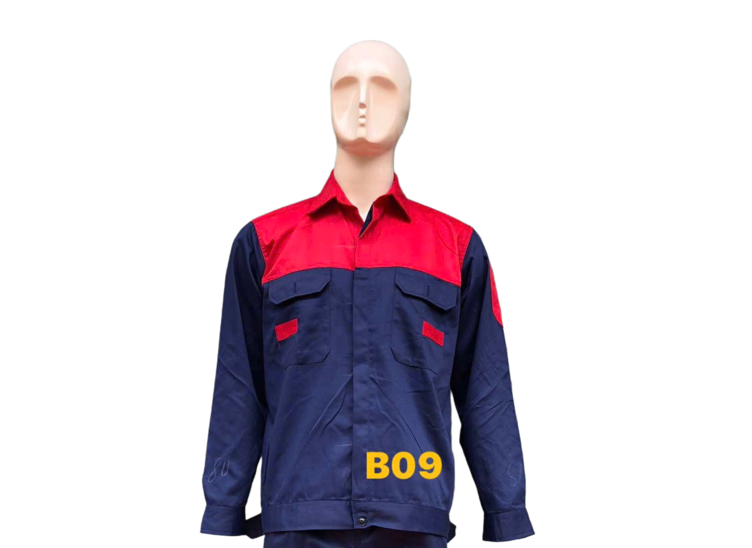Áo bảo hộ lao động mã B09 được thiết kế với kiểu dáng hiện đại, phối màu xanh than – đỏ nổi bật, mang lại vẻ ngoài chuyên nghiệp cho người lao động. Sản phẩm được may từ vải kaki cao cấp, có độ bền cao, chịu được môi trường làm việc khắc nghiệt mà vẫn đảm bảo sự thoải mái, thoáng mát cho người mặc