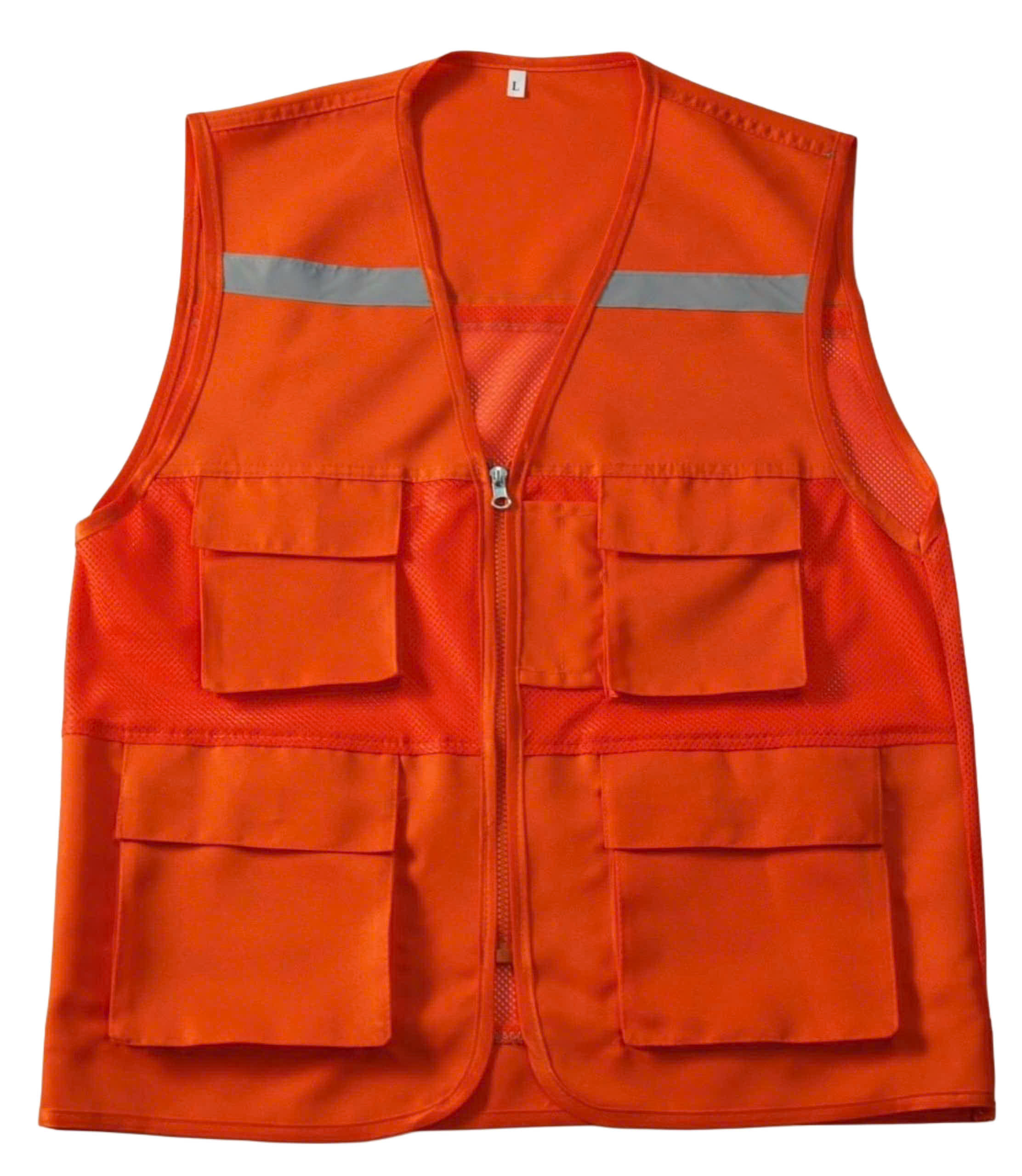 Áo Gile Bảo Hộ Vải Kaki Phối Lưới Màu Cam – 4 Túi Hộp Tiện Dụng, Thoáng Mát, Bền Đẹp