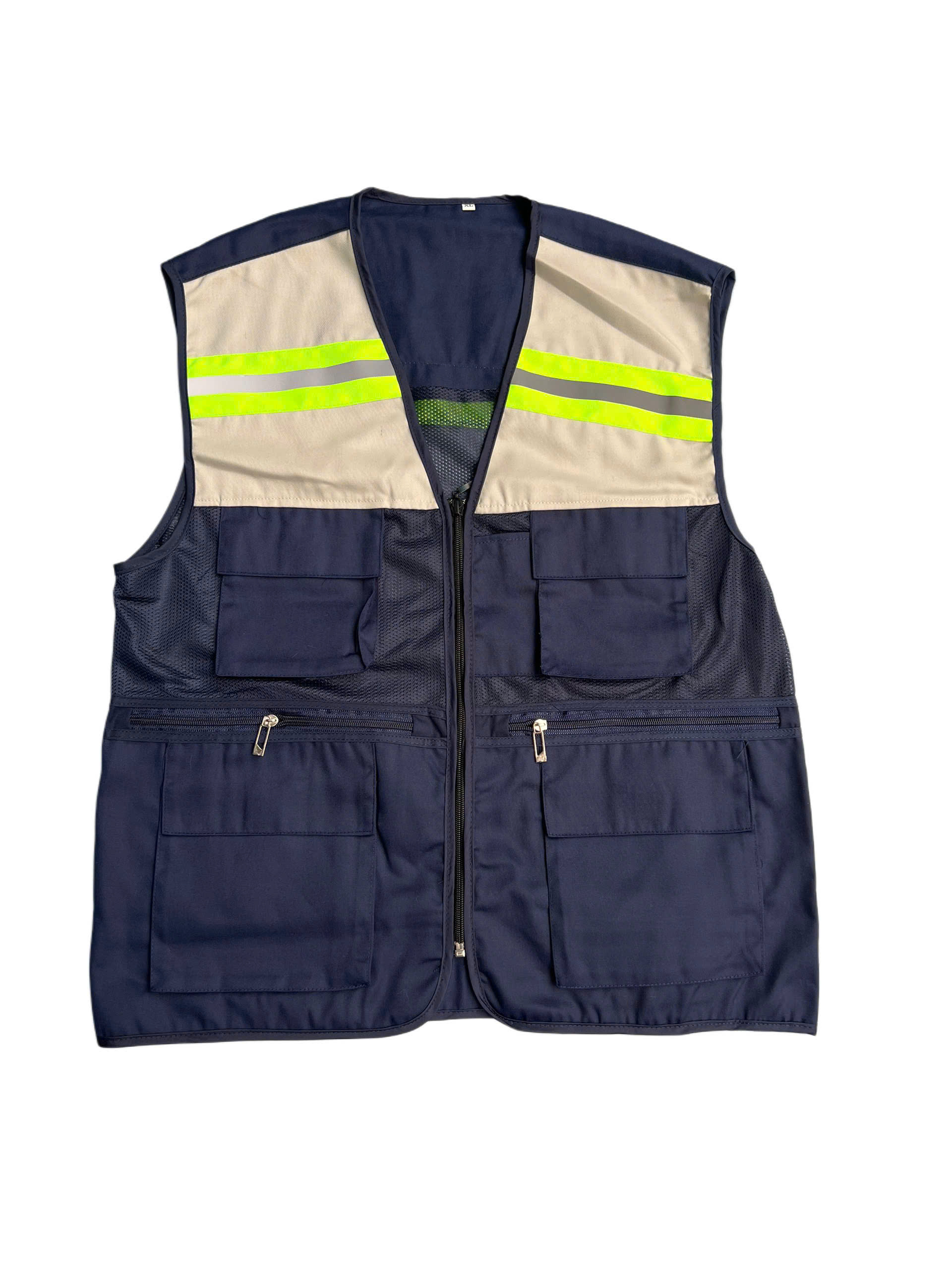 Áo gile bảo hộ là trang bị không thể thiếu đối với người lao động làm việc ngoài trời, công trình xây dựng hay trong môi trường kỹ thuật – cơ khí. Mẫu áo gile bảo hộ màu xanh than phối ghi có phản quang dưới đây được Bảo Hộ Lao Động Phúc Thành An thiết kế tối ưu cho sự thoáng mát, tiện dụng và an toàn tuyệt đối.