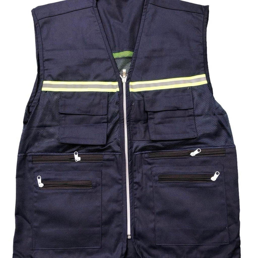 Áo gile bảo hộ màu than 6 túi phản quang là mẫu áo được sử dụng rộng rãi trong công trình, nhà xưởng và các ngành nghề kỹ thuật. Với thiết kế 6 túi tiện dụng, chất liệu kaki kết hợp lưới thoáng khí và hệ thống phản quang xanh nổi bật, sản phẩm mang lại sự an toàn – tiện nghi – chuyên nghiệp cho người lao động.