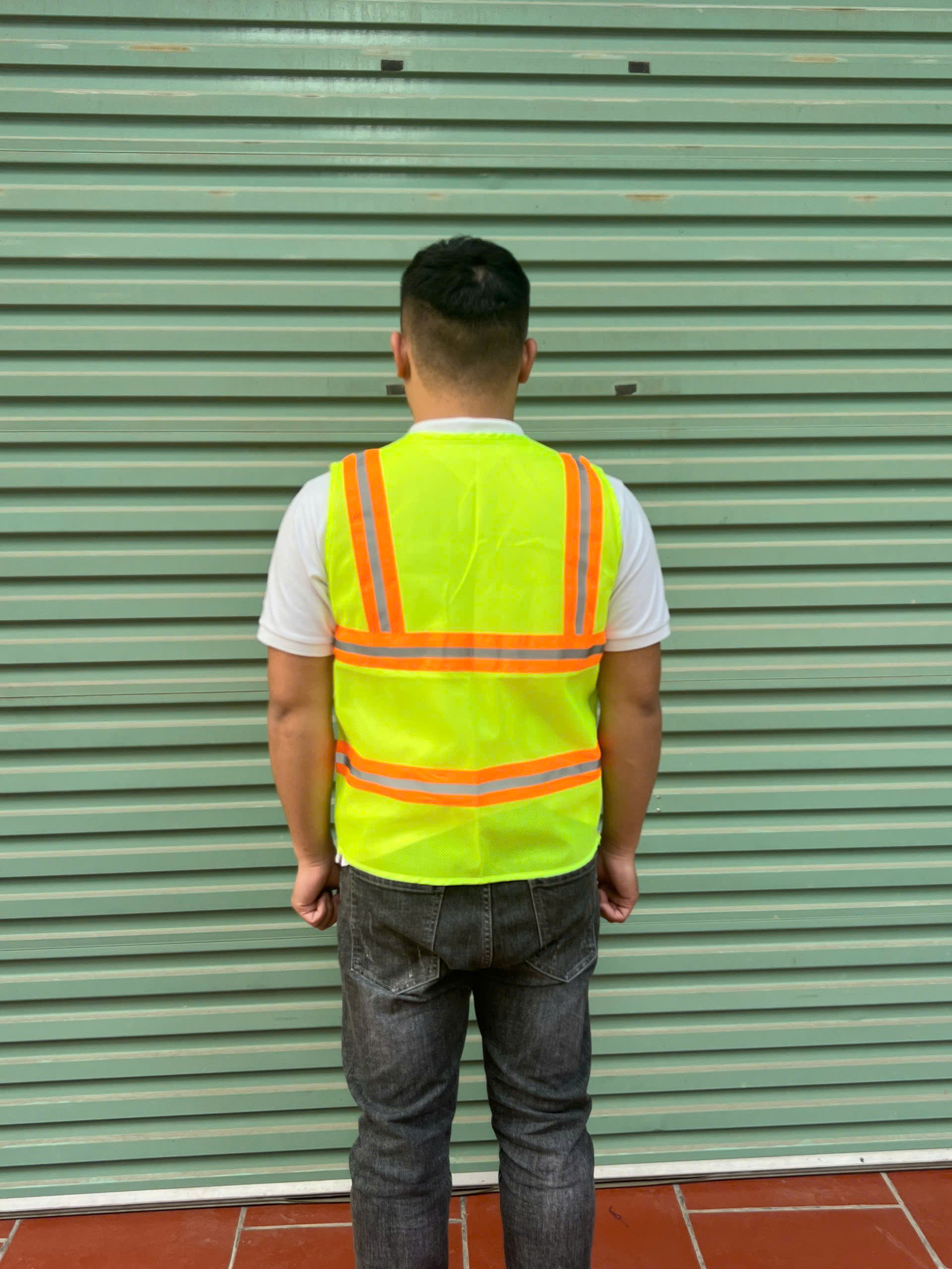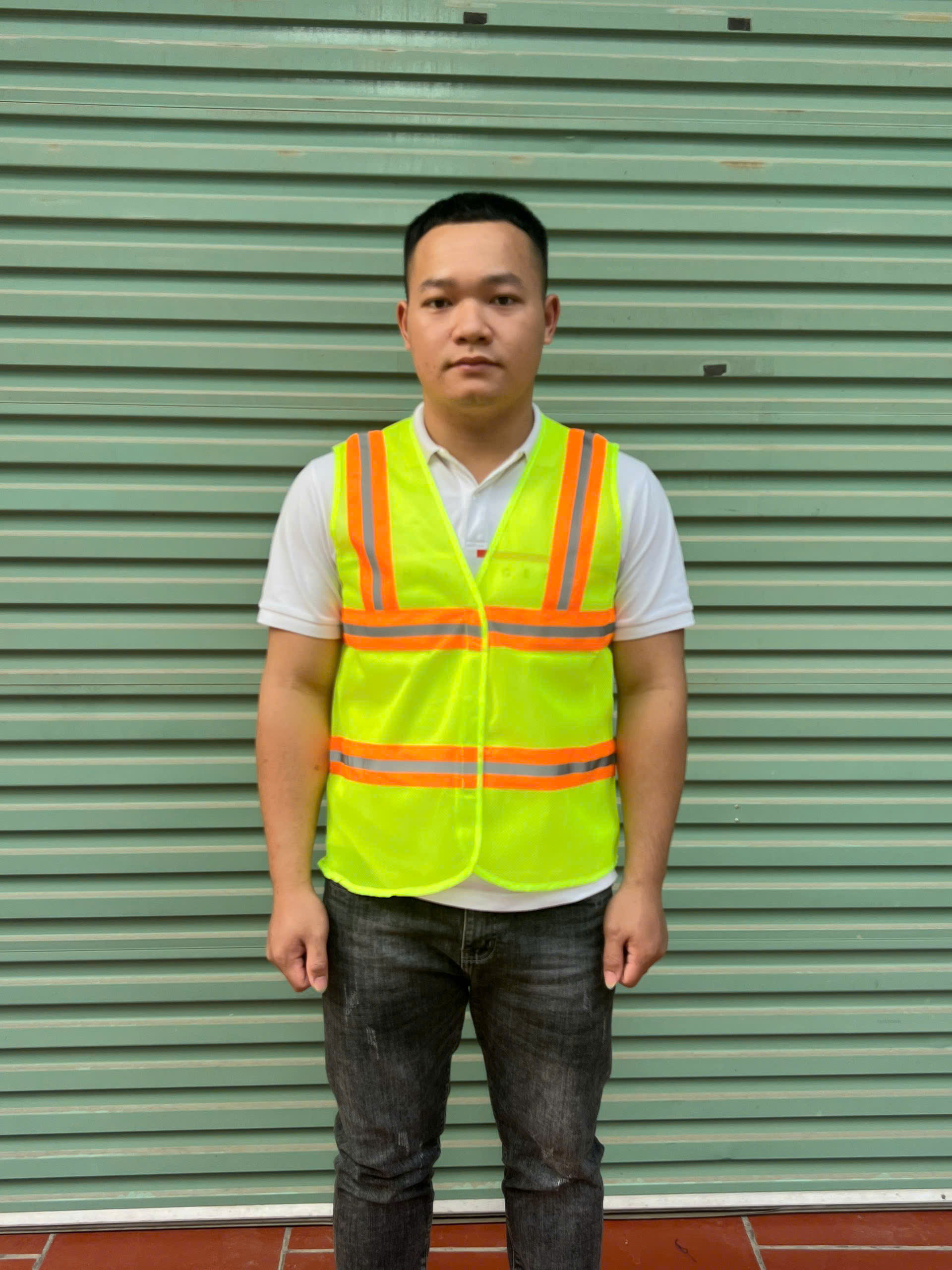 1. Màu sắc: Áo có màu vàng neon, dễ dàng nhận diện trong điều kiện ánh sáng yếu hoặc ban đêm.