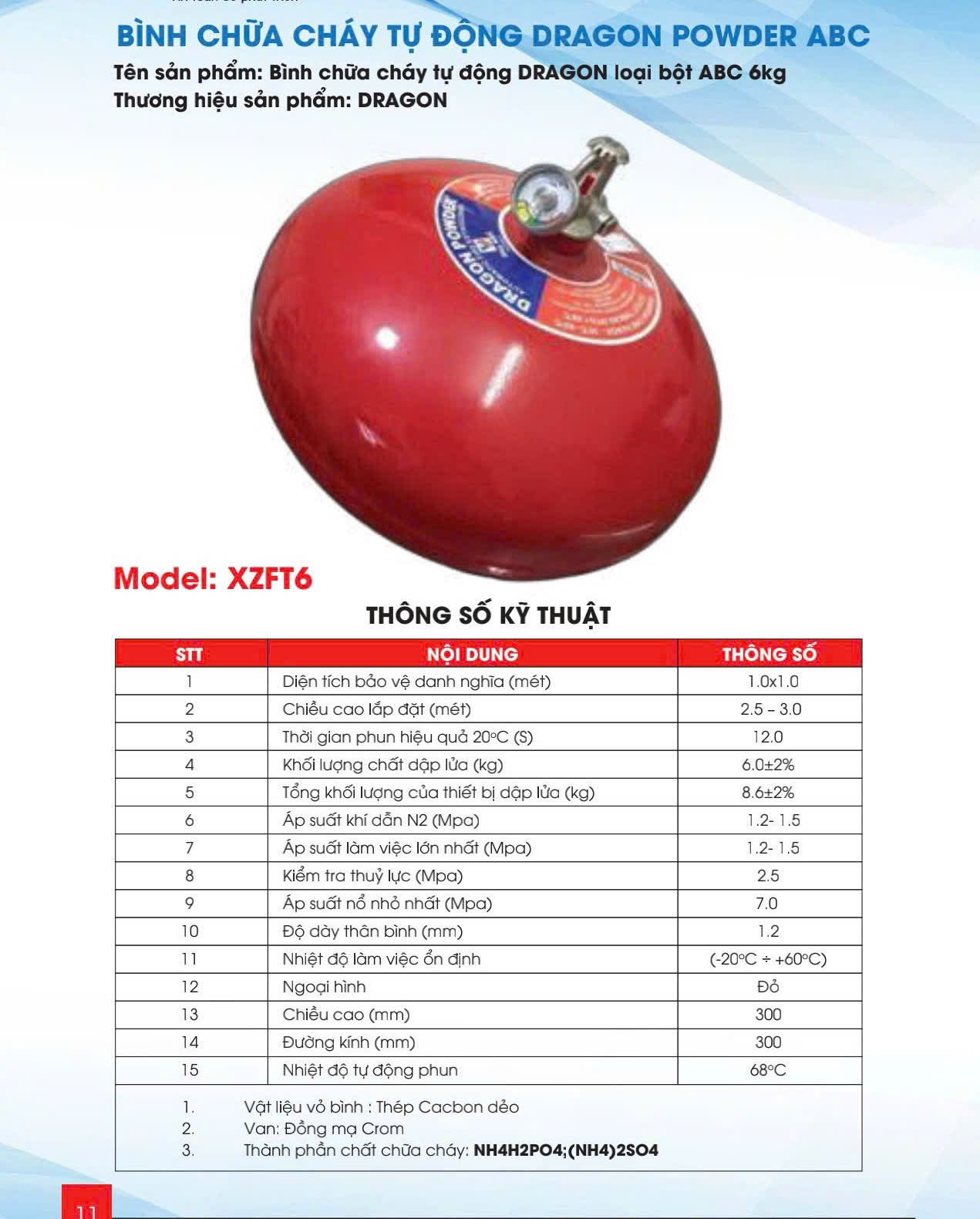 | 4. | Trọng lượng chất dập lửa (kg) | 6.0±2% |