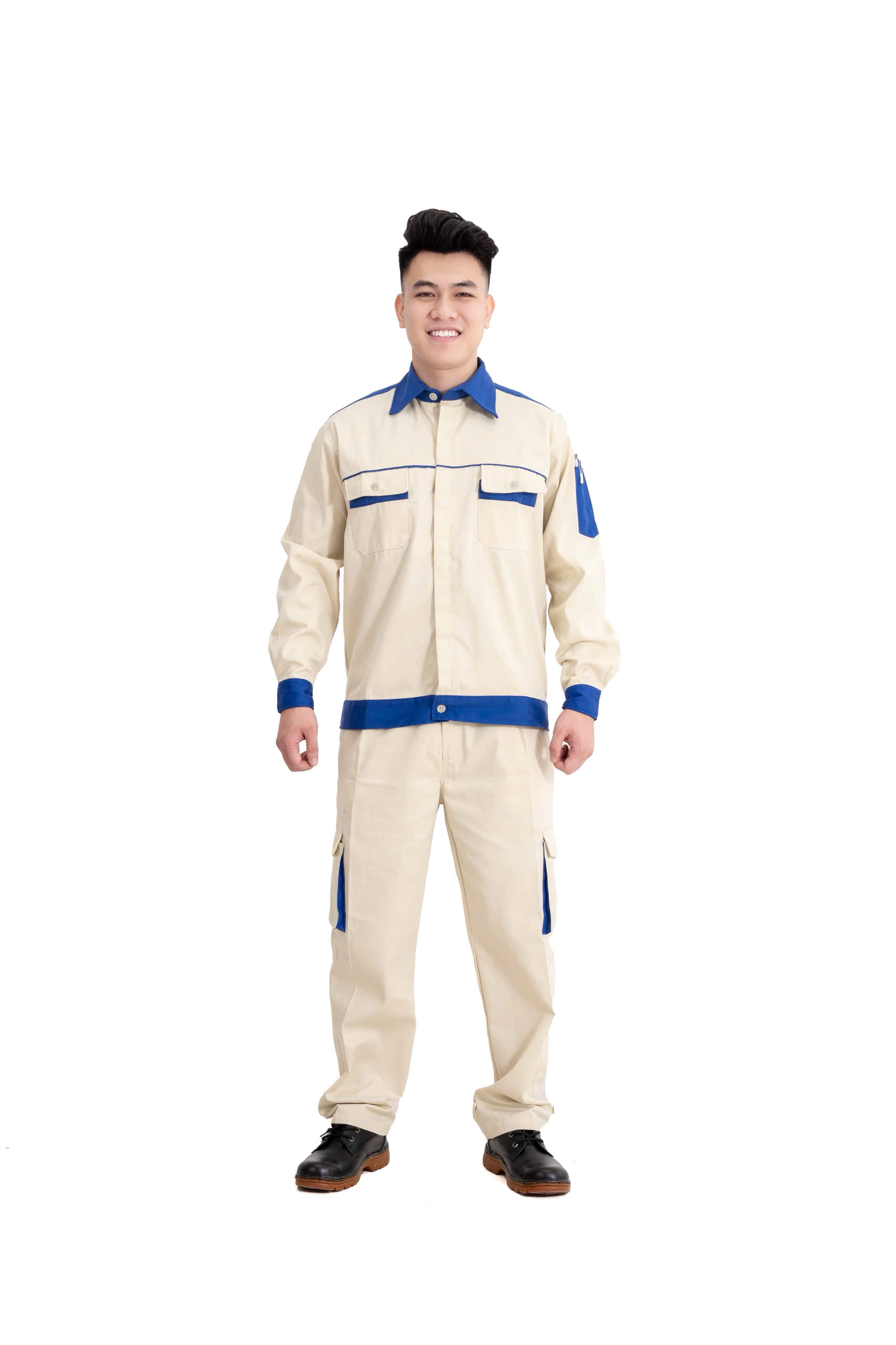 • Do có cotton nên vải có khả năng thấm hút mồ hôi và thoáng khí tốt — phù hợp với môi trường làm việc ngoài trời hoặc vận động nhiều.