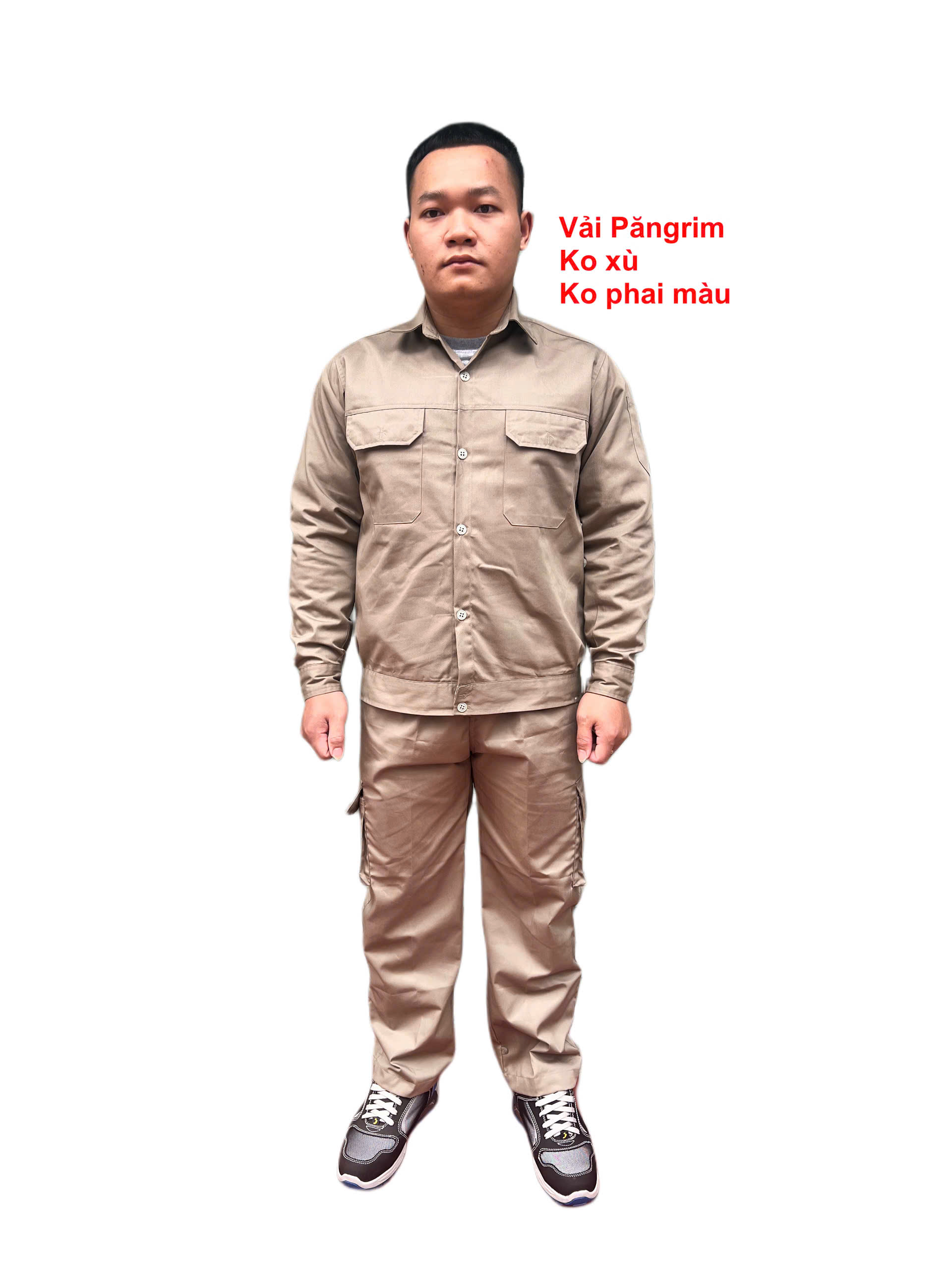 • Vải Pangrim giữ màu tốt, không bị phai nhanh, không bị xù lông, không bị xổ chỉ nhiều — phù hợp với quần bảo hộ sử dụng hằng ngày.