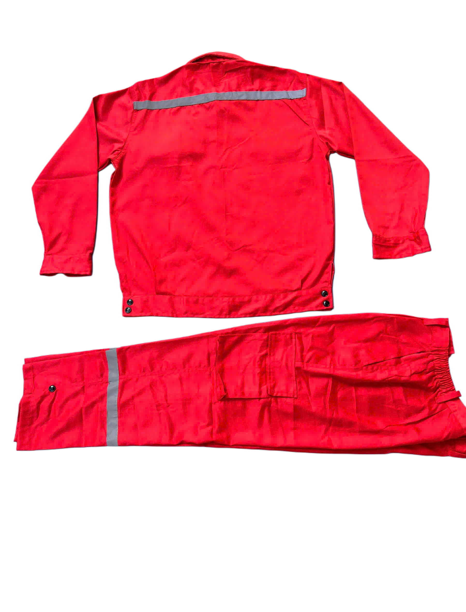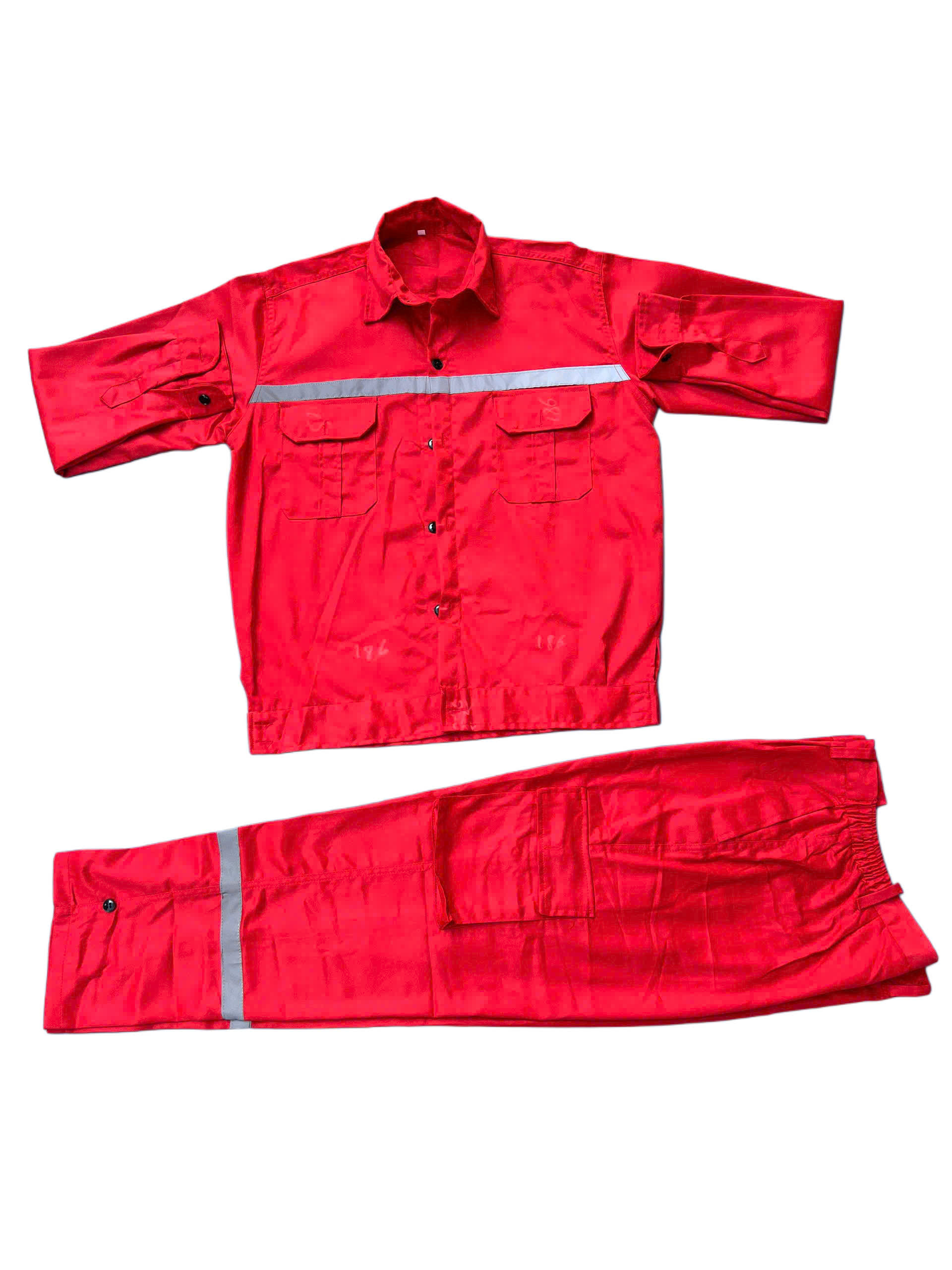 Bộ quần áo được may từ vải kaki chất lượng cao, dày dặn nhưng vẫn đảm bảo độ thoáng mát khi mặc lâu. Màu đỏ tươi mang tính cảnh báo cao, kết hợp dải phản quang sắc nét, đặc biệt phù hợp cho công nhân làm việc ban đêm hoặc trong điều kiện ánh sáng kém.