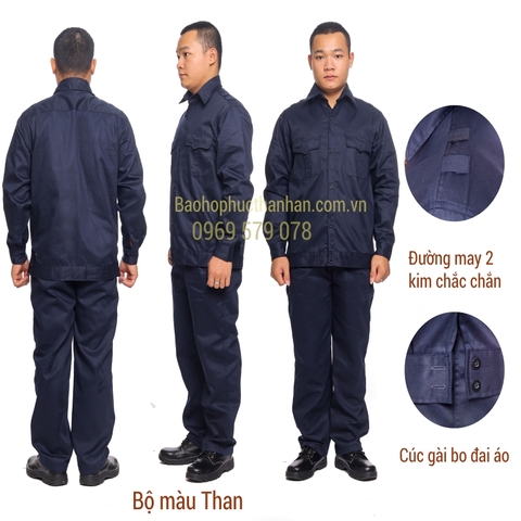 Quần áo bảo hộ lao động màu than được may banqgf chất vải kaki chéo 21 bền bỉ, thoáng mát