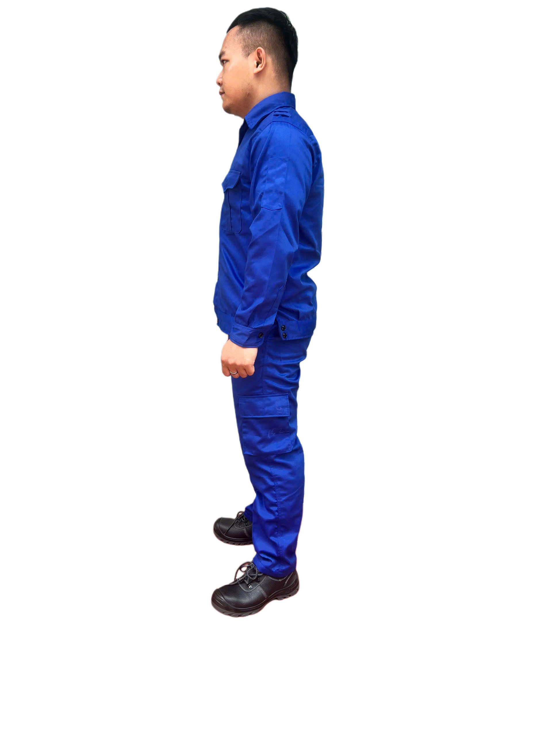 Bộ quần áo bảo hộ lao động màu xanh quần túi hộp, vải bền chắc, thoáng mát, form chuẩn, phù hợp công nhân, kỹ thuật, cơ khí, xây dựng.
