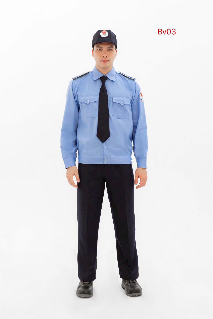 ✅ Màu sắc xanh nhạt (áo) phối xanh đen (quần) phù hợp nhiều đơn vị bảo vệ.