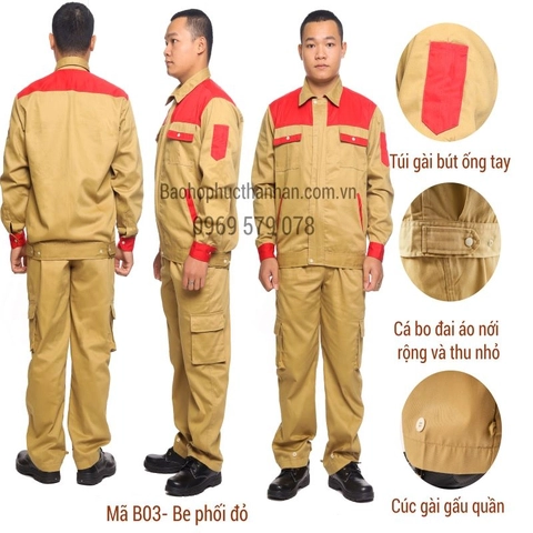 - Thiết kế: Áo đai liền dùng khóa kéo, có nẹp dấu khóa, áo có 2 túi ngực, 2 túi chéo bụng, 1 túi gài bút ống tay, đai áo có cá bo đai có thể nới rộng, thu nhỏ phù hợp với từng điều kiện làm việc.