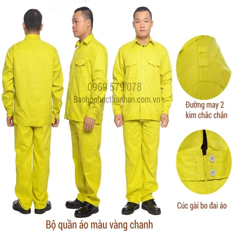 Bộ quần áo bảo hộ lao động màu vàng chanh phù hợp với nhiều ngành nghề như: